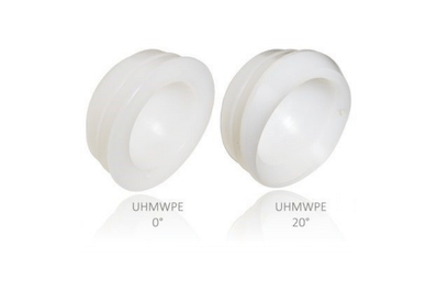 UHMWPE inserts in neutral and hooded version, both 10° and 20°.