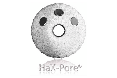 - HaX-Pore®: double plasma-sprayed porous Titanium and Hydroxyapatite (500 ± 50 µm Ti e 40 ± 10 µm HA) in order to obtain good primary stability and encourage osteoblasts growth;